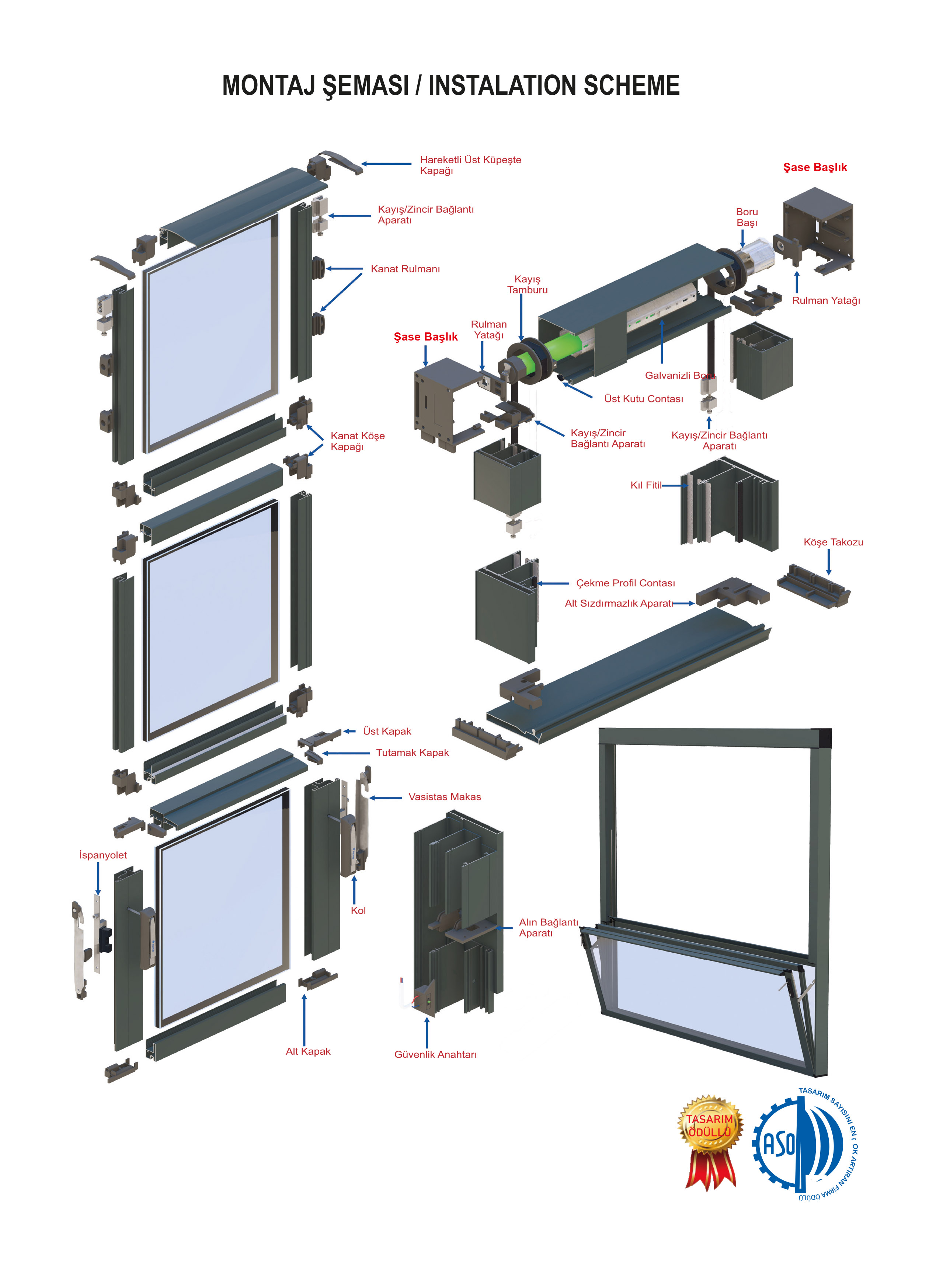 Opsiyonel vasistaslı cam seçeneği, yüksek katlarda kolay temizlik ve havalandırma imkânı sunar. Giyotin sistemler %60 oranında ses yalıtımı sağlar, ısıcamlı modellerde kullanılan özel camlar sayesinde ısı yalıtımı üst seviyeye çıkarılır. Akıllı ev sistemleriyle uyumlu çalışır ve bağımsız test kuruluşlarınca yapılan ses, rüzgâr ve yalıtım testleriyle Avrupa standartlarında sertifikalandırılmıştır.
